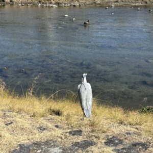 京都の鴨川で撮られた、アオサギがカモを見つめている写真です📷